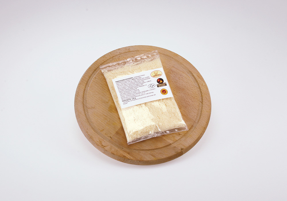 Parmigiano Reggiano già grattugiato in busta.